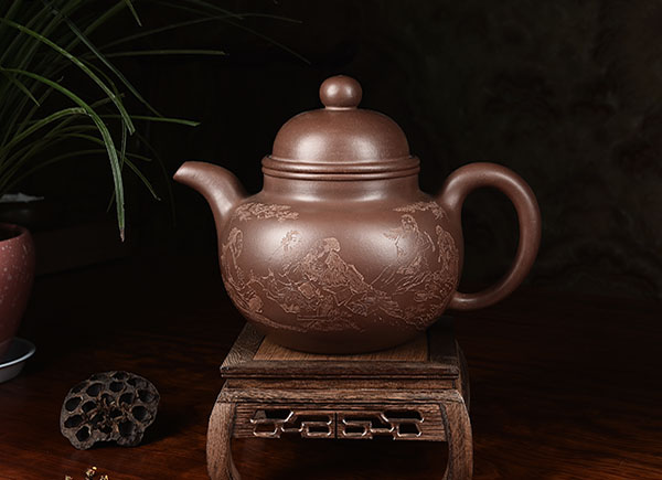 葛岳純涉足紫砂藝苑,盡顯風(fēng)流。其佳構(gòu)妙品,巨制細(xì)作早已數(shù)不勝數(shù)。茗壺方面的代表作有:“九龍至尊系列,供春系列,掇球系列,南瓜壺,漢方壺,青玉四方,壽桃壺”等。這些作品較 好地把握視覺效果,給人以莊重、文靜、飽滿、柔和的感覺,虛實(shí)處理妥貼,富有神韻,彰顯濃郁的東方藝術(shù)特色。大型紫砂雕塑有禮品。